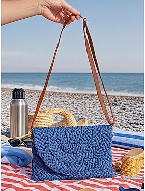 dámská tkaná crossbody kabelka ze slámy - boho letní spojka s nastavitelným ramenním popruhem pro plážové oblečení, rekreační oblečení a běžné nošení