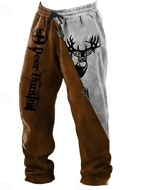 Pánské Jelen Běžec Fleecové tepláky Stahovací šňůrka v pase Vinobraní Na běžné nošení Venkovní ulice Na den Kapsy Rovné kalhoty Termální Zima 3D tisk Hnědá