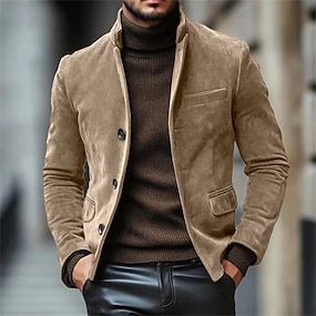Pánské Lehká bunda Bunda z umělého semiše Neformální bunda Denní Venkovní Kapsy Podzim Zima Bez vzoru Vinobraní Šik ven Stojáček Standardní Hnědá Saka