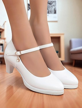 Dámské Denní koktejl Maturitní ples Přezky Platforma Oblá špička Elegantní Módní Roztomilý PU Spona Bílá