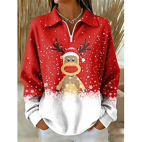 Vánoční dámské mikiny grafické vintage volnočasové dlouhý rukáv kulatý výstřih běžné topy ulice každodenní nošení volnočasový tisk růžová červená tmavě zelená zelená podzim zima