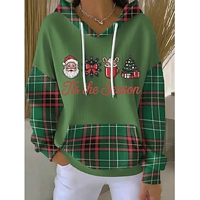 Dámská vánoční mikina s potiskem kostkovaná ležérní s dlouhým rukávem s kapucí běžné tílko denní nošení ležérní sportovní bílá červená zelená červená bílá podzim zima