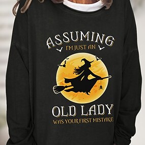 Dámské mikiny s grafikou čarodějnice casual dlouhé rukávy crew neck běžné topy street každodenní nošení casual potisk černá bílá světle zelená modrá oranžová jaro podzim zima