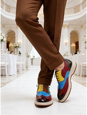 Pánské barevné kožené polobotky typu brogue, formální svatební obuv, stylová obuv pro ženicha a svatební hosty