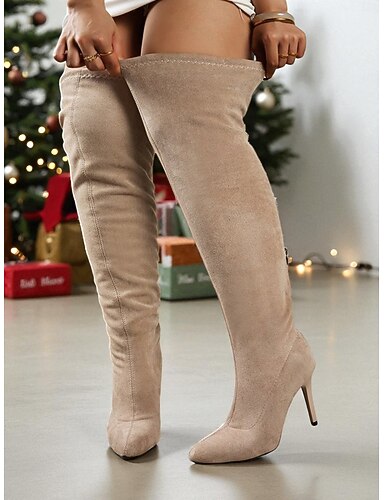 Dámské khaki elastické kozačky nad kolena, špičaté kozačky na jehlovém podpatku s ostrou špičkou, stylová slim fit zimní módní obuv pro dámské párty, do klubu &večerní outfity