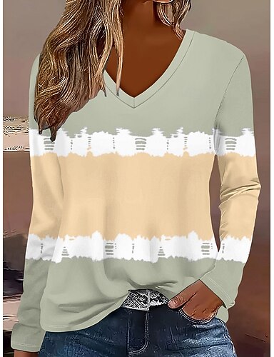 Dámské Tričko Tónované Grafika Proužky Vinobraní stylové Klasické Dlouhý rukáv Do V Běžné topy Denní Tisk Světle zelená Jaro Podzim Zima