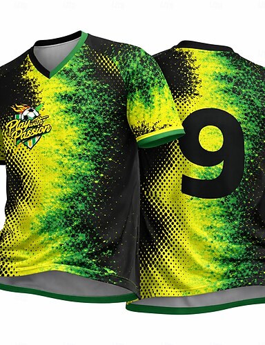 Pánské fotbalové tričko s geometrickým gradientem, abstraktní žlutozelené, číslo 9, atletické, s krátkým rukávem, UPF 50, rychleschnoucí, prodyšné, ze síťoviny, 2026, fotbalové tričko pro fanoušky,