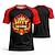Pánský fotbalový dres, černý červený, atletický top, prodyšný síťovaný grafický tričko s potiskem "too hot to lose", design býčího plamene, rychleschnoucí funkční tričko, UPF50+, turnaj, hrací den
