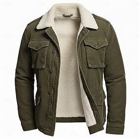 Pánské Kordurová bunda Fleecová bunda Formální Domů Taktická Kapsy Podzim Podzim zima Pevná barva Aktivní Vinobraní Košilový límec Standardní Černá Khaki Kávová Saka