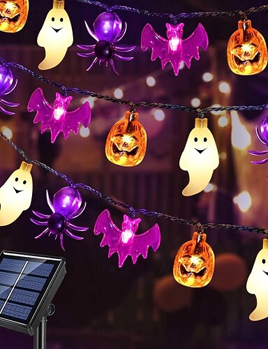 Solární halloweenské řetězové světlo, venkovní dýňové, netopýří, duchové, pavoučí světlo 6,5 metrů, 30 světel, 8 režimů, vodotěsné, na dvůr, zahradu, balkónové zábradlí, verandu, halloweenskou