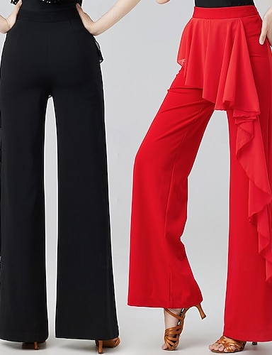 Dámské kalhoty s širokými nohavicemi na latinskoamerické tance s šifonovou vrstvou