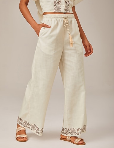 Dámské kalhoty s strečovou látkou, květinovým potiskem, šifonem, průsvitnými panely, rozšířenými nohavicemi, elastickým pasem, elegantními, pohodlnými, do práce, podzimními