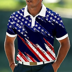 4. července 2026 250. Pánské Americká americká vlajka Pólo Krátký rukáv Polo tričko Košile s límečkem Na běžné nošení Venkovní Sport Denní nošení 3D tisk Léto Vodní modrá
