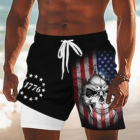 250. výročí Ameriky Den nezávislosti Pánské americké vlajkové Patriotic 1776 Podšité šortky 2 v 1 Board šortky Plavky Střední pas Prázdniny Boční kapsy S kompresní podšívkou Elastický stahovací pas