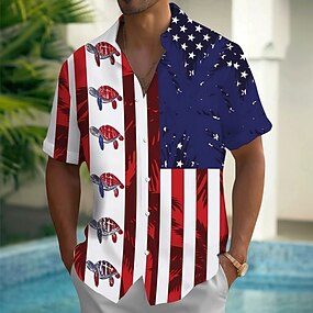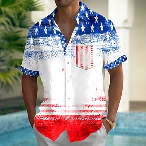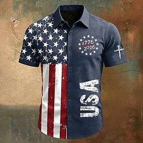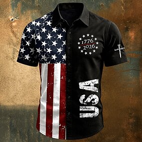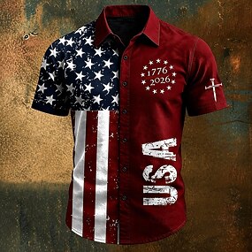 Americký den nezávislosti Pánské 4. července 250. výročí USA Americká vlajka Vlastnosti Košile na knoflíky Krátký rukáv Havajské Na běžné nošení Letovisko Ležérní Venkovní Dovolená Léto Jaro Přehnutý