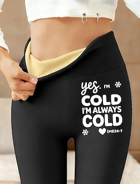 Dámské legíny s fleecovou podšívkou Fleecové kalhoty punčocháče Legíny Módní Pohodlné Plná délka Vysoký pas Písmeno Slátanina Zahřívací Yumuşak Prodyšné Lehce elastické Ležérní Denní Venkovní Světle