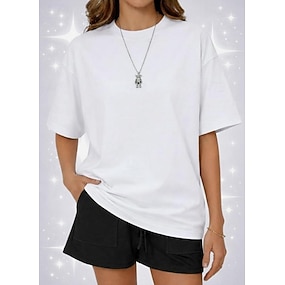 Ženské 100% bavlněné tričko plus velikost oversized jednobarevné stylové základní casual krátký rukáv kulatý výstřih běžné topy každodenní venčení písek černá bílá tmavě šedá taupe léto jaro