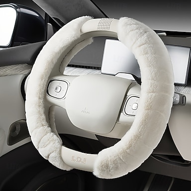 Luxusní plyšový potah na volant auta s diamantovými výztuhami, ekologický, teplý, vhodný pro většinu modelů aut, průměr 38 cm / 15 palců