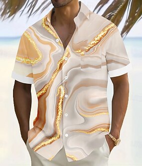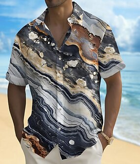 Pánské Geometrický Mramor Abstraktní umění Košile Letní košile Košile na knoflíky Krátký rukáv Móda pro volný čas Dovolená Streetwear Léto Přehnutý 3D tisk Jedna přední kapsa Len jako košile Vodn