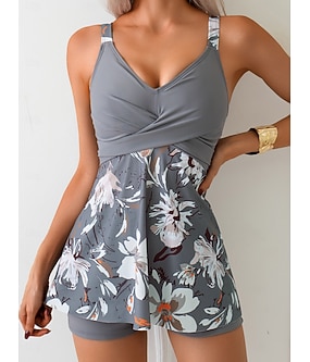 Dámské tankini 2 kusy plavek s bočním střihem kontrola pasu vysoký pas zeštíhlující bez zad dovolená plážové oblečení květinové výstřih V bez rukávů