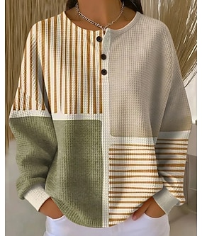 Dámské Svetrová mikina Knoflíky Grafika Geometrický Elegantní Vinobraní Módní Dlouhý rukáv Tričkový Běžné topy Ležérní Domů Svatební host Vodní modrá Tmavě červená Trávová zelená Duhová Jaro Podzim