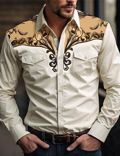 Pánské Květinový Westernová košile Trička s potiskem Dlouhý rukáv Vinobraní vesternový styl Denní nošení Jdeme ven Víkend Jaro léto Přehnutý Kapsy Tisk Tlačítko dolů Vodní modrá Světle modrá Bíl