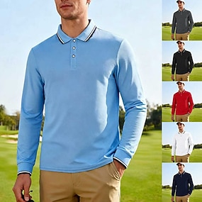 Pánské Golfová košile Golfové polokošile Ležérní ulice Klopa Dlouhý rukáv Základní Moderní Bez vzoru Knoflíky Jaro Podzim Běžný Černá Bílá Rubínově červená Námořnická modř Tmavě šedá Světle modrá