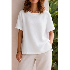Dámské Bavlněné plátěné tričko Tričko Top Pevná barva Elegantní Módní Na běžné nošení Krátký rukáv Tričkový Běžné topy Ležérní Denní Oblečení na dovolenou Bílá Žlutá Světlá růžová Léto Jaro