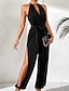 Dámské Běžný Kombinéza Aktivní Pevná barva Bez rukávů Široké nohavice Krk ohlávky Rozparek Denní Dovolená Běžný Černá Léto