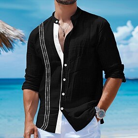 Pánské Košile plátěná košile Košile Guayabera Letní košile Oblečení na pláž Košile na knoflíky Bez vzoru Dovolená Curise Černá Bílá Světlá růžová Vodní modrá Dlouhý rukáv Kulatý límeček Jaro léto