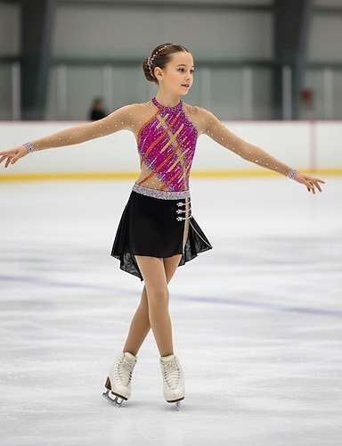 Šaty na bruslení Dámské Dívčí Buz Pateni Šaty Fialová modrá / černá Slátanina Otevřít Zpět Síťka Spandex Vysoká pružnost Trénink Profesionální Soutěž Bruslařské oblečení Klasický Křišťál a