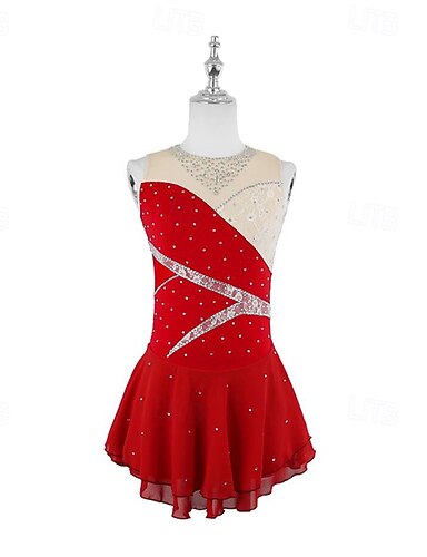 Šaty na bruslení Dámské Dívčí Buz Pateni Šaty Červená Slátanina Díra na palec Síťka Spandex Elastické Trénink Profesionální Soutěž Bruslařské oblečení Zahřívací Křišťál a napodobenina Bez rukávů