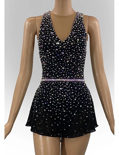 Šaty na bruslení Dámské Buz Pateni Šaty Černá Slátanina Otevřít Zpět Vysoká pružnost Trénink Soutěž Bruslařské oblečení Klasický Křišťál a napodobenina Bez rukávů Bruslení Krasobruslení