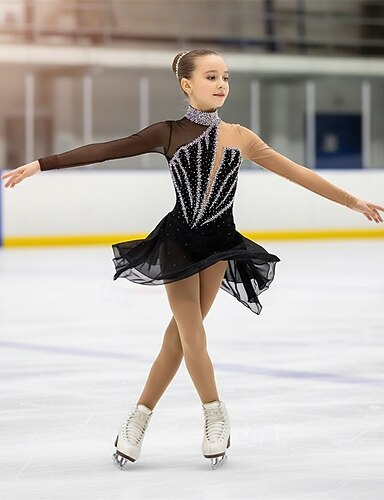 Šaty na bruslení Dámské Dívčí Buz Pateni Šaty Černá Slátanina Díra na palec Síťka Spandex Elastické Trénink Profesionální Soutěž Bruslařské oblečení Zahřívací Křišťál a napodobenina Dlouhý rukáv