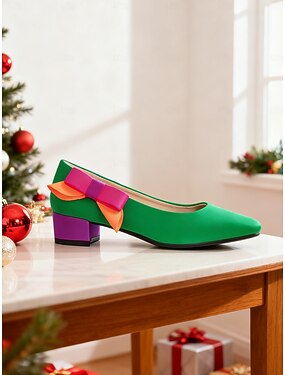 Dámské zelené lodičky s barevnou mašlí – stylové sváteční boty, ideální na Vánoce, Nový rok a slavnostní příležitosti
