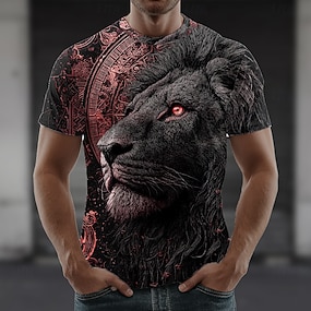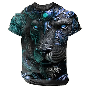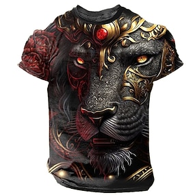 Pánské Grafika Lev Košile Tričko Trička Legrační trička Krátký rukáv tričko 3D tisk Tričkový Košile Vinobraní Designové Základní Ležérní Denní Víkend Černá Bílá Trávová zelená Léto Oblečení Vět