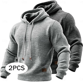 Pánské Kapuce Vaflové mikiny s kapucí Svetr Černá + světle šedá Bílá+tmavě šedá Tmavě šedá+světle šedá Khaki + zelená Zelená + Meruňková Kapuce Bez vzoru Klokaní kapsa S texturou Ležérní Denní Sporty