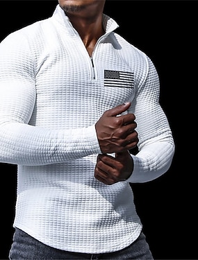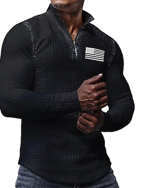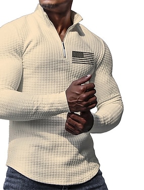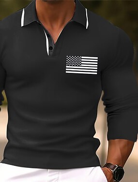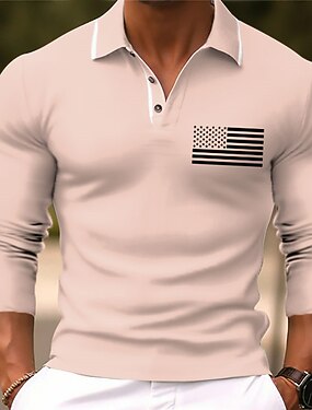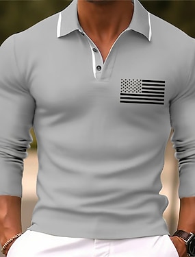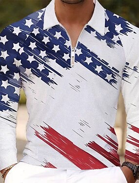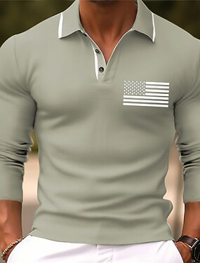 Tričko Mužské Americká vlajka Ležérní tričko Plážové tričko Dlouhý rukáv Ležérní pohodlné dovolená Street Havaj Jaro Podzim Klopový tisk Tmavě modrá Červená Modrá