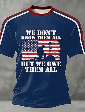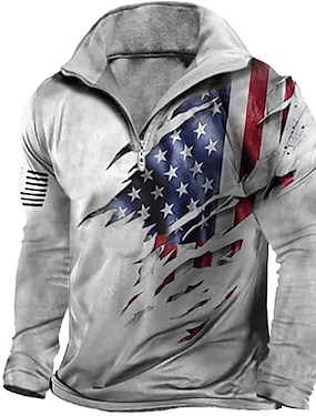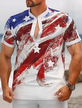 Den nezávislosti Pánské vlastenecké tričko s americkou vlajkou volnočasové tričko Tričko s kubánským límečkem košile s krátkým rukávem Armáda vojenské dovolené městská móda léto jaro Stojákový límec