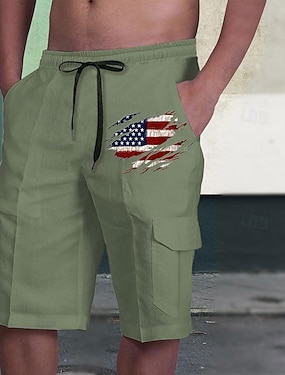 Pánské 4. července 250. výročí USA Vlajka USA Košile Košile na knoflíky Košile bez rukávů Bez rukávů Vlastenec Dovolená Léto Jaro Přehnutý Přední dvě kapsy Bílá Khaki