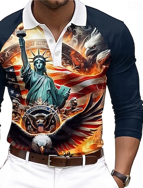 250. výročí Ameriky Den nezávislosti Pánské tričko Sochy svobody s americkou vlajkou Patriotic Letní tričko Sako Krátký rukáv Módní Neformální Prázdninové Letní Jaro Rozepínací 3D potisk