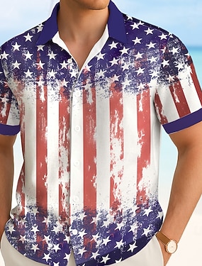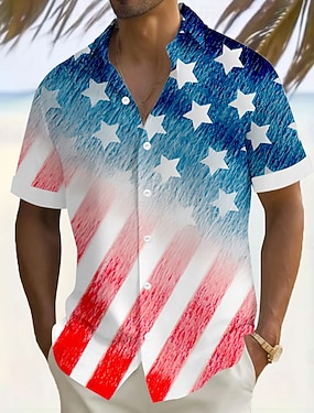 Den nezávislosti Pánské 4. července 250. výročí USA Americká vlajka Vlastenec Košile Letní košile Košile na knoflíky Krátký rukáv Móda pro volný čas Dovolená Festival Léto Jaro Přehnutý 3D tisk