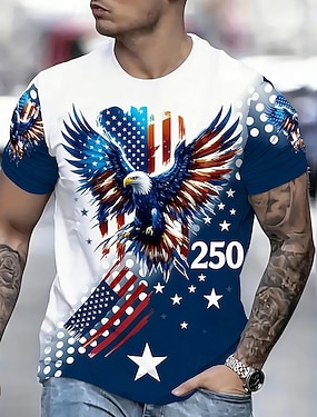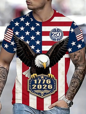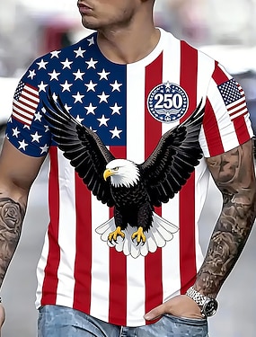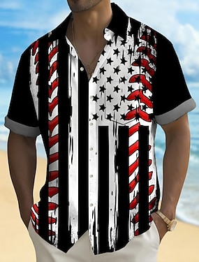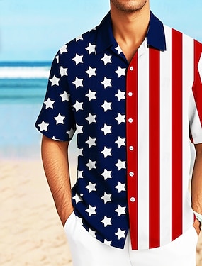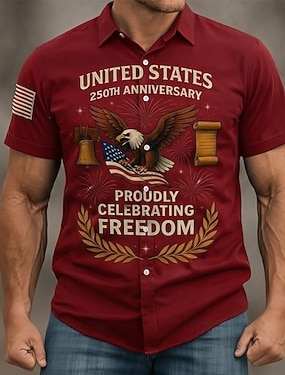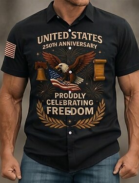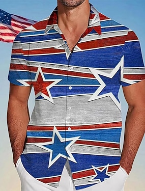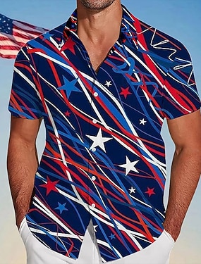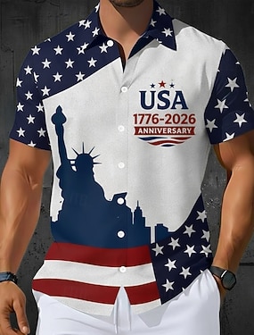 Americký den nezávislosti Pánské Vlajka 4. července 250. výročí USA Americká vlajka Košile na knoflíky Trička s potiskem Krátký rukáv Na běžné nošení Denní Dovolená Večerní oslava Léto Přehnut