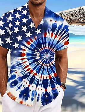 Košile pro muže s americkou vlajkou k oslavě Dne nezávislosti tie dye motiv patriotické letní košile button-up krátké rukávy módní ležérní prázdninová košile léto jaro klopy 3D tisk