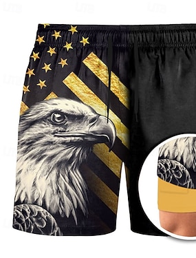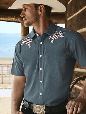 Pánské 4. července 250. výročí USA Orel Vlajka USA Košile Westernová košile Košile na knoflíky Krátký rukáv Vlastenec Dovolená Léto Jaro Přehnutý 3D tisk Len jako košile Vodní modrá Fialová Tmav