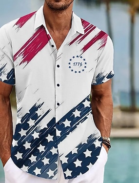Košile pro muže s americkou vlajkou k oslavě Dne nezávislosti 1776 letní košile button-up krátké rukávy módní ležérní venkovní prázdninová košile každodenní nošení léto klopy 3D tisk