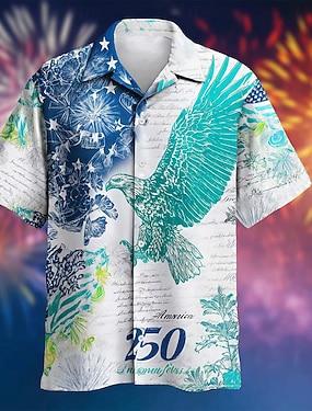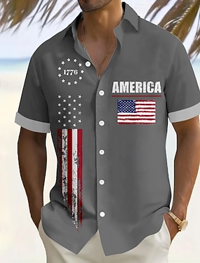 Den nezávislosti Pánské Americká americká vlajka 4. července 250. výročí USA Vlastenec Košile Košile pro volný čas Kubánská košile Krátký rukáv Móda pro volný čas Streetwear Dovolená Léto Jaro Košile