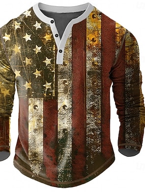 Pánské 4. července 250. výročí USA Vlajka USA Vlastenec Košile Košile na knoflíky Dlouhý rukáv Vintage Retro Dovolená Běžné / Denní Jaro Podzim Přehnutý 3D tisk košile s límečkem Armádní zelená Khaki