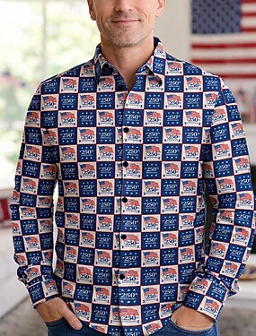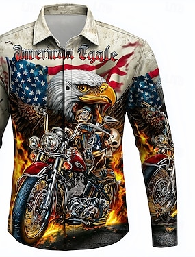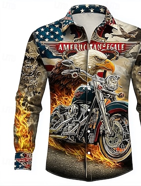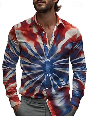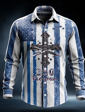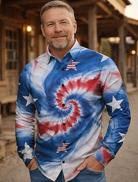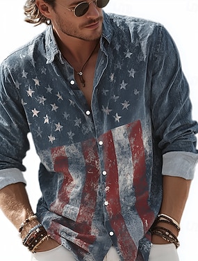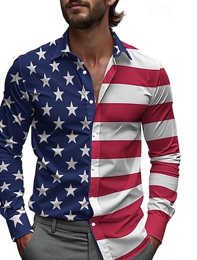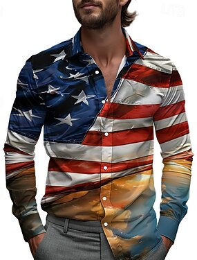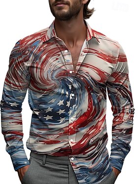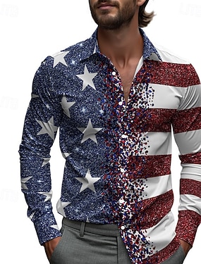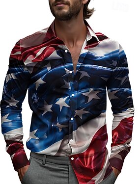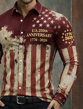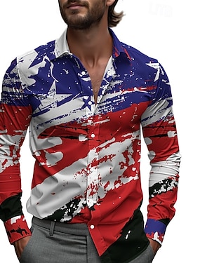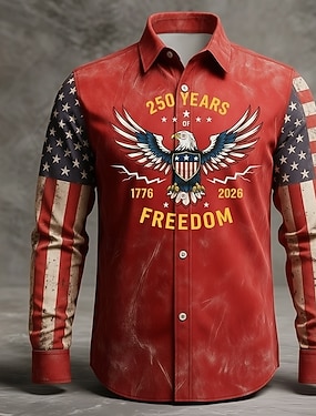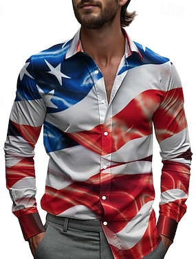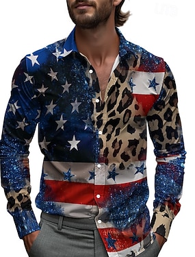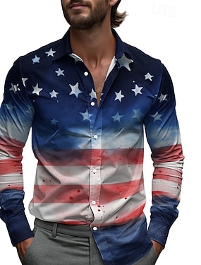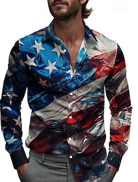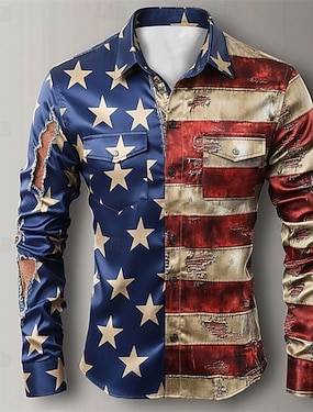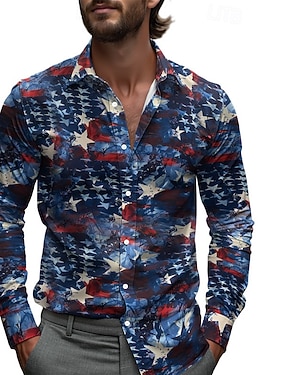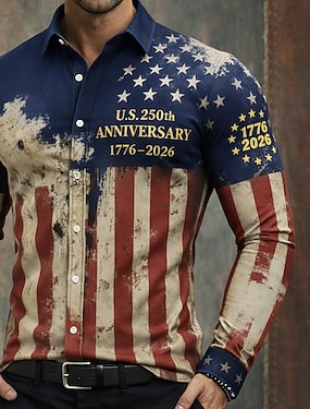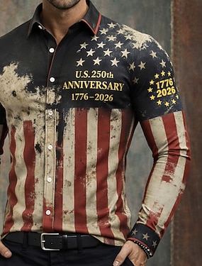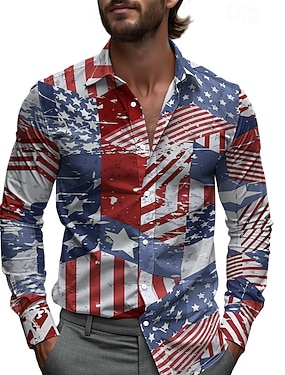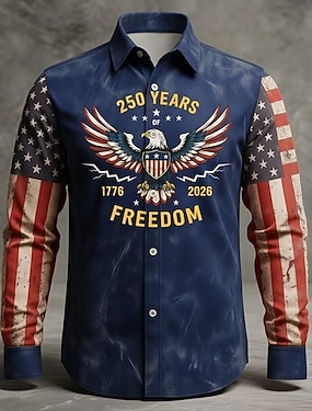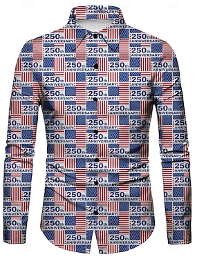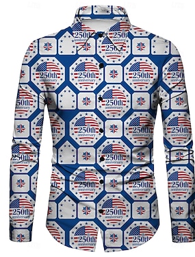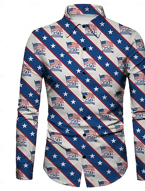 Grafika Americká americká vlajka 4. července 250. výročí USA Košile Košile s knoflíkem Košile pro volný čas Dlouhý rukáv Havajské Na běžné nošení Pohodlné Venkovní Dovolená ulice Jaro Podzim Přehnutý