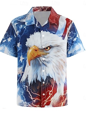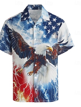Pánské Orel Vlajka USA 250. výročí Spojených států Košile Letní košile Košile na knoflíky Krátký rukáv Vlastenec Venkovní Dovolená Léto Jaro Přehnutý 3D tisk košile s límečkem Jedna přední kapsa